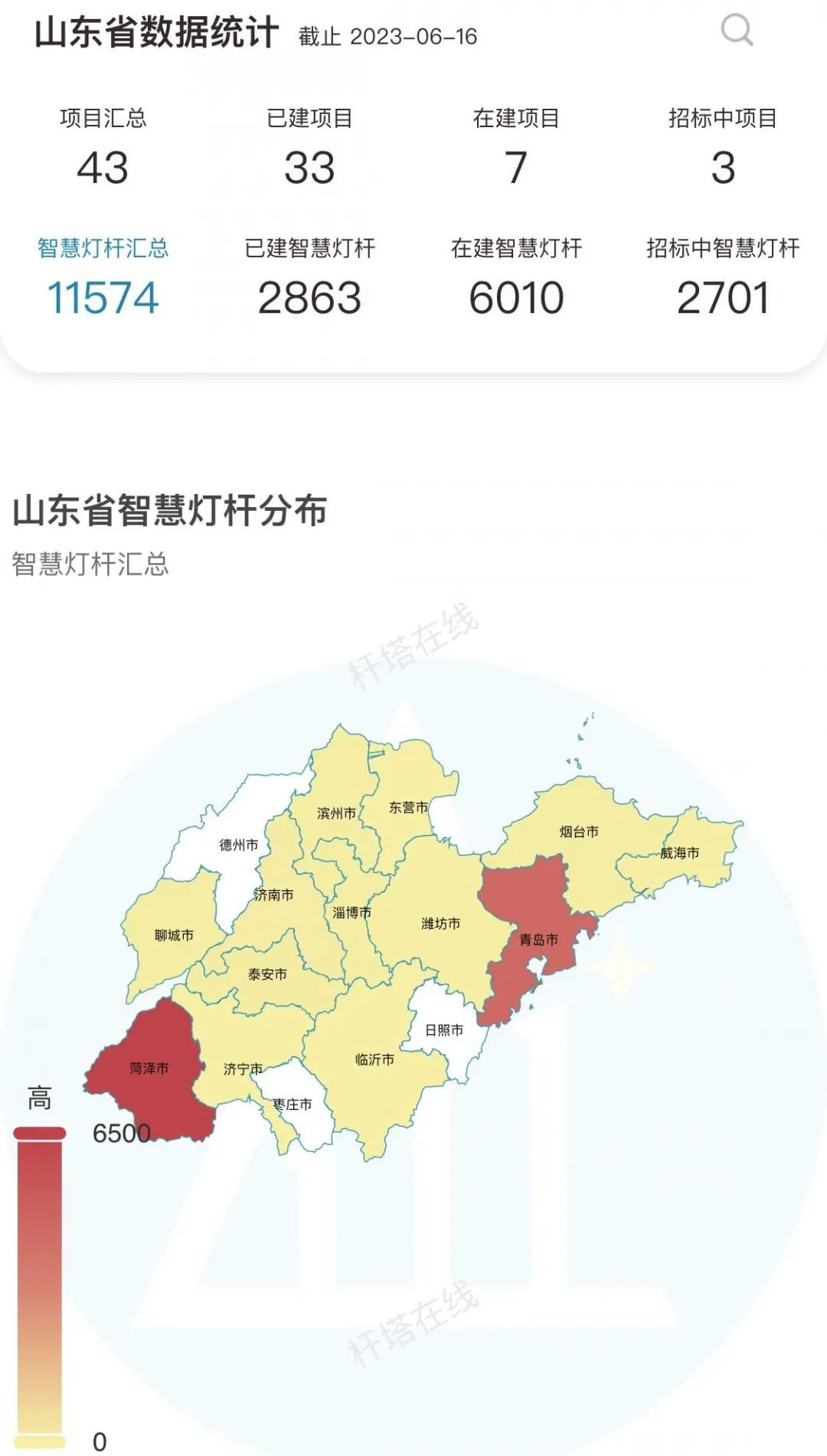 首先,我們來看一下智慧燈桿建設的全國數據和山東省數據。