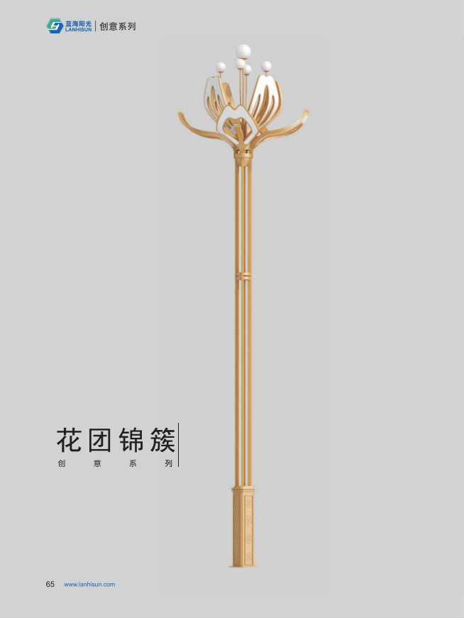 1、高度為6-16米; 2、花葉光源為4組LED光源,色溫2500-6500K,其余光源為LED裝飾光源,每個光源功率為30-60W; 3、LED驅動電源壽命可達五年; 4、整體熱鍍鋅噴塑,保證燈桿15年不生銹; 5、可以根據使用地區的地域文化、產業特點等進行文化定制;